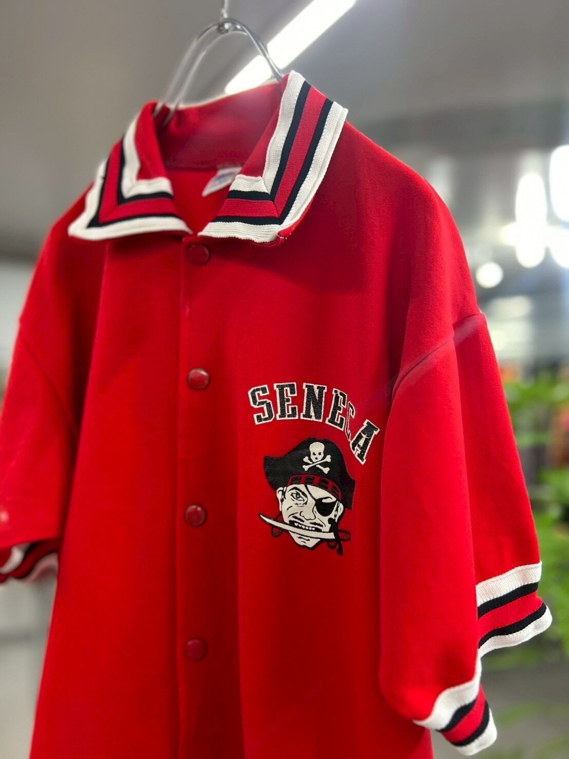 SENECAの刺繍&パイレーツロゴに、ライン入りのポロカラーと袖・裾リブが効いたスポーツMIXな1枚。