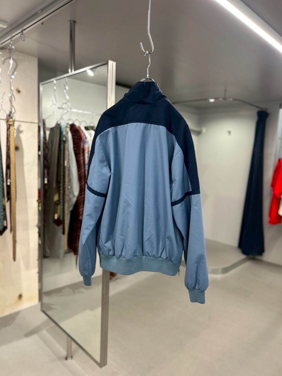 ライトブルーとネイビーの切り替え配色が爽やかな、90sスポーツミックスなトラックジャケット。