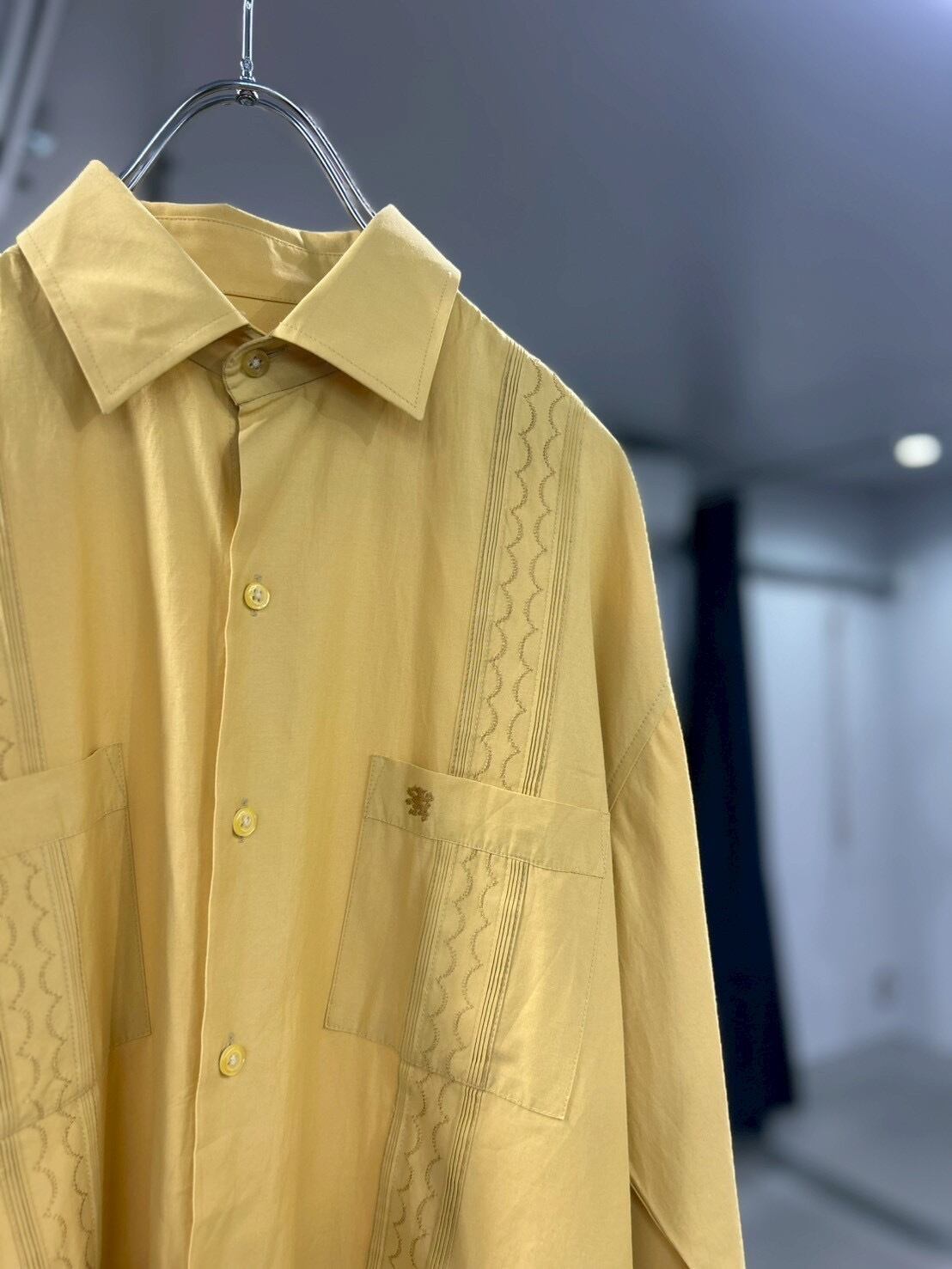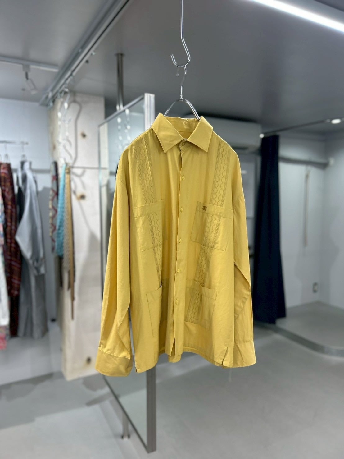 鮮やかなマスタードイエローが目を引くロングスリーブシャツ。