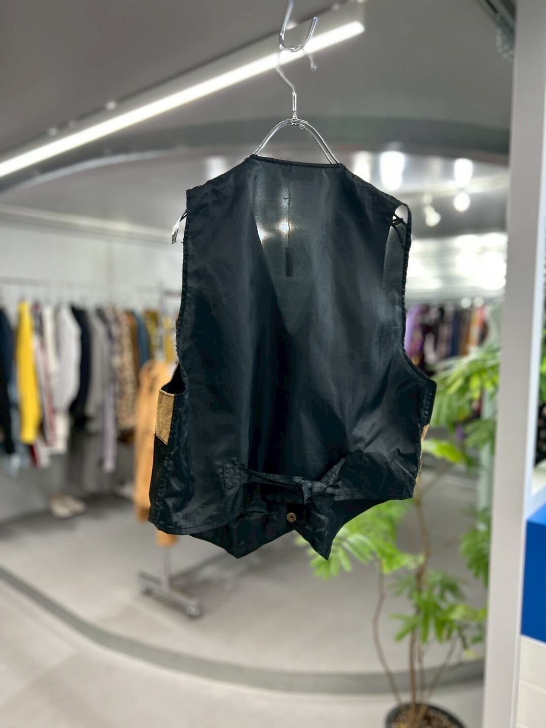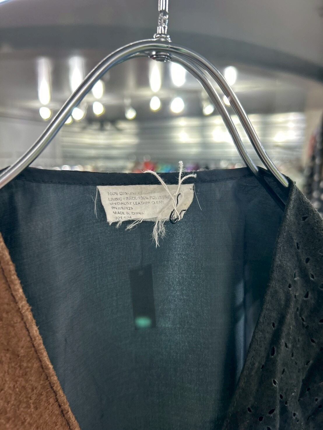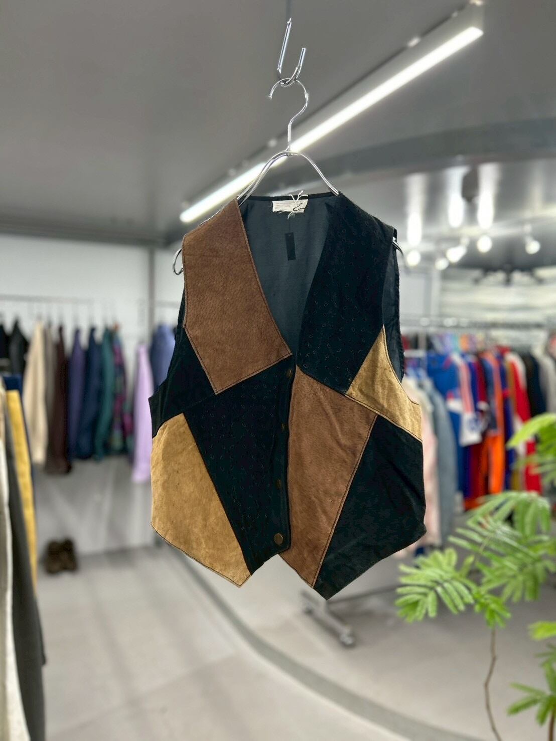 ブラック×ブラウン×ベージュのスエードを組み合わせた、存在感あるパッチワークベスト。