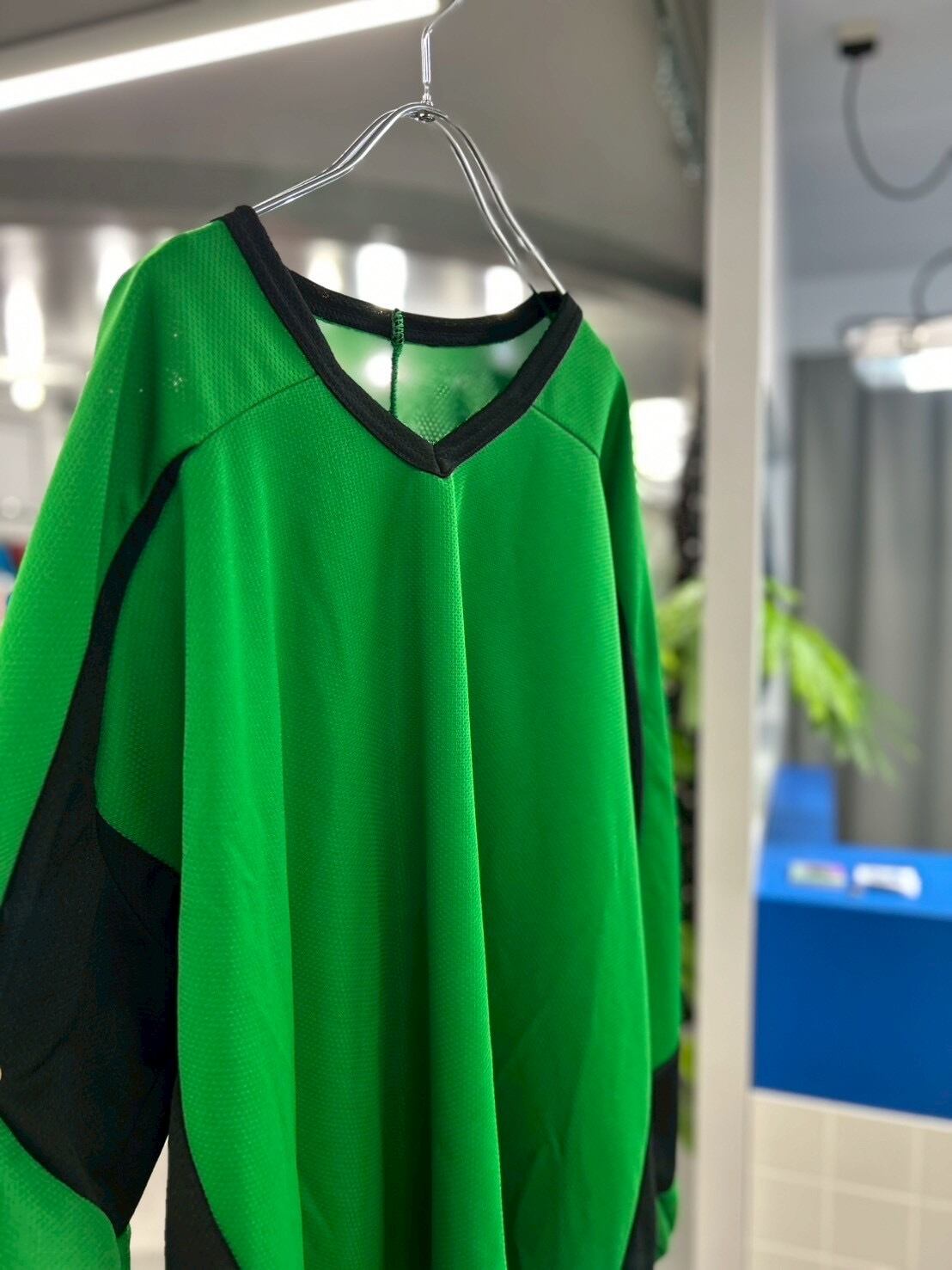 鮮やかなグリーンとブラックの切替が映える、カナダ製ホッケーシャツ。