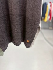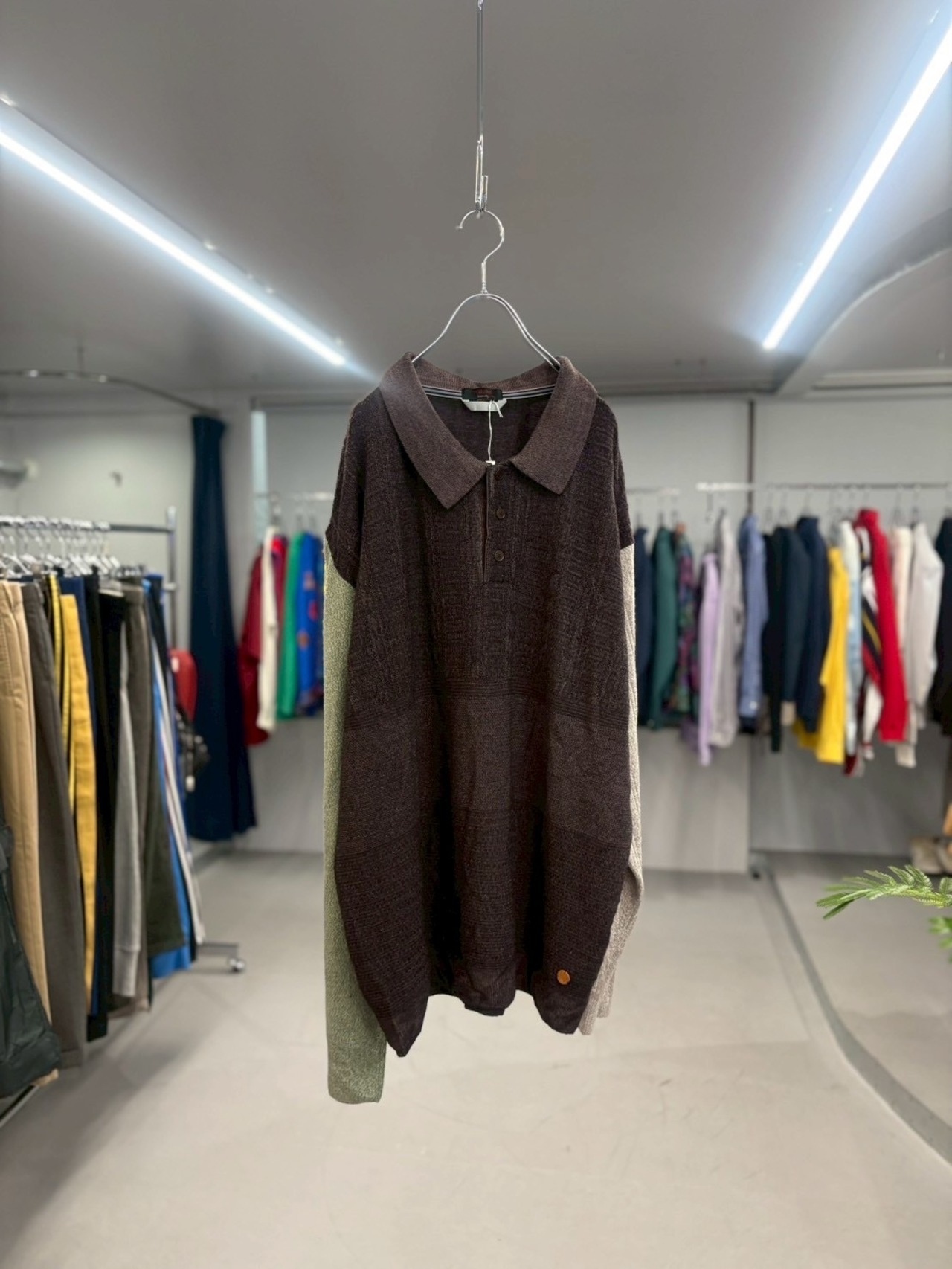 ブラウンを基調に、袖はベージュとグリーンのカラー切替を施した独特なデザイン。シンプルながらも存在感のある配色で、一枚でコーディネートの主役になるアイテムです。