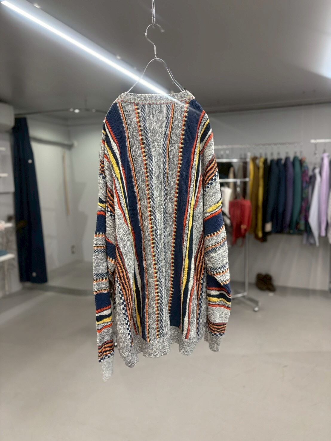 Coogi(クージー)を彷彿とさせる凹凸のある織りと、独特の色の重なりがヴィンテージらしい雰囲気を演出します。