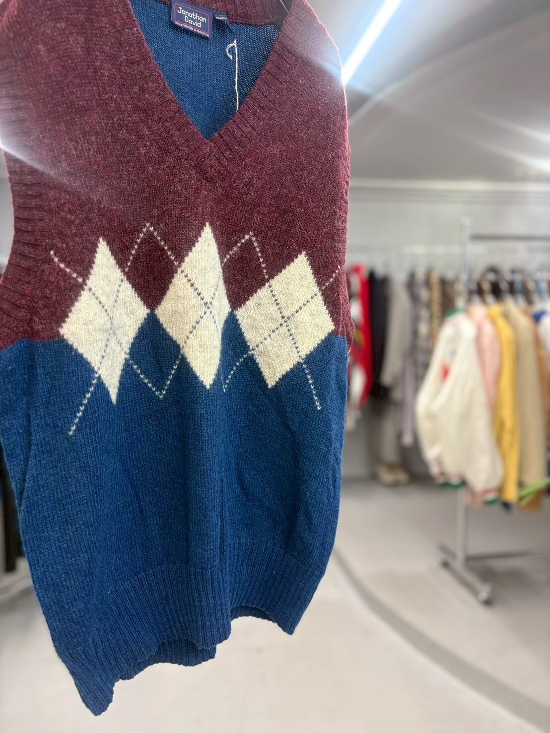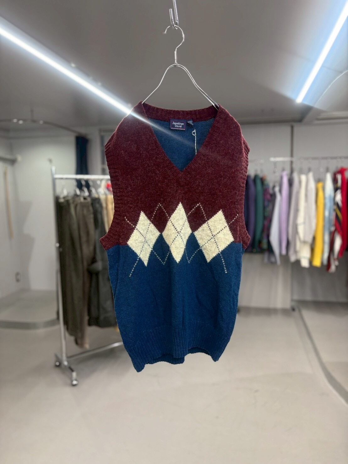 フロントのダイヤパターンが効いた英国トラッドなムードの一枚。