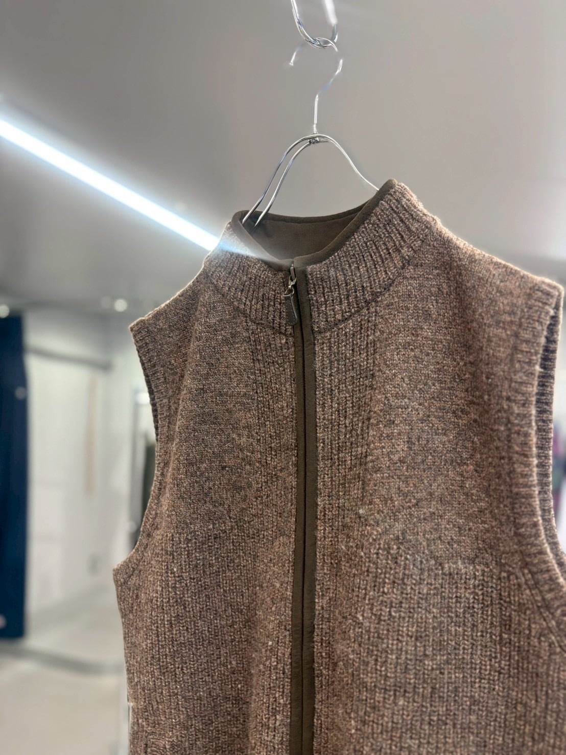 100%メリノラムズウール仕様のフルジップニットベスト。