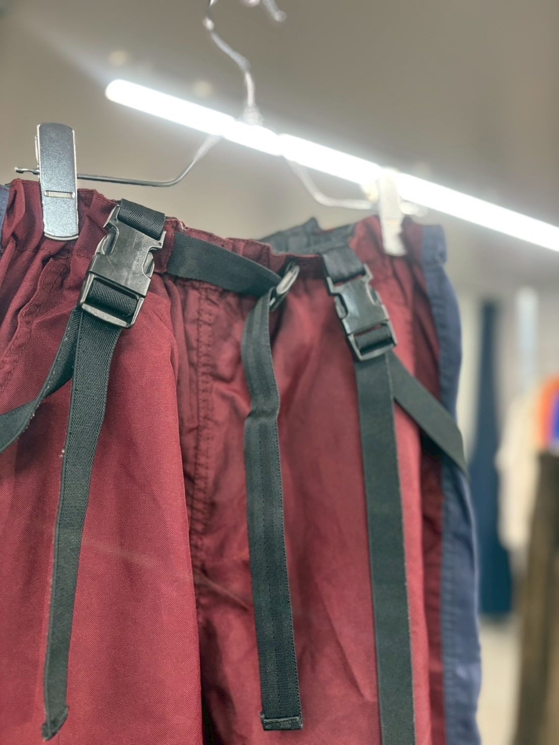 ボルドー×ネイビーの切り替え、ダブルベルト仕様。