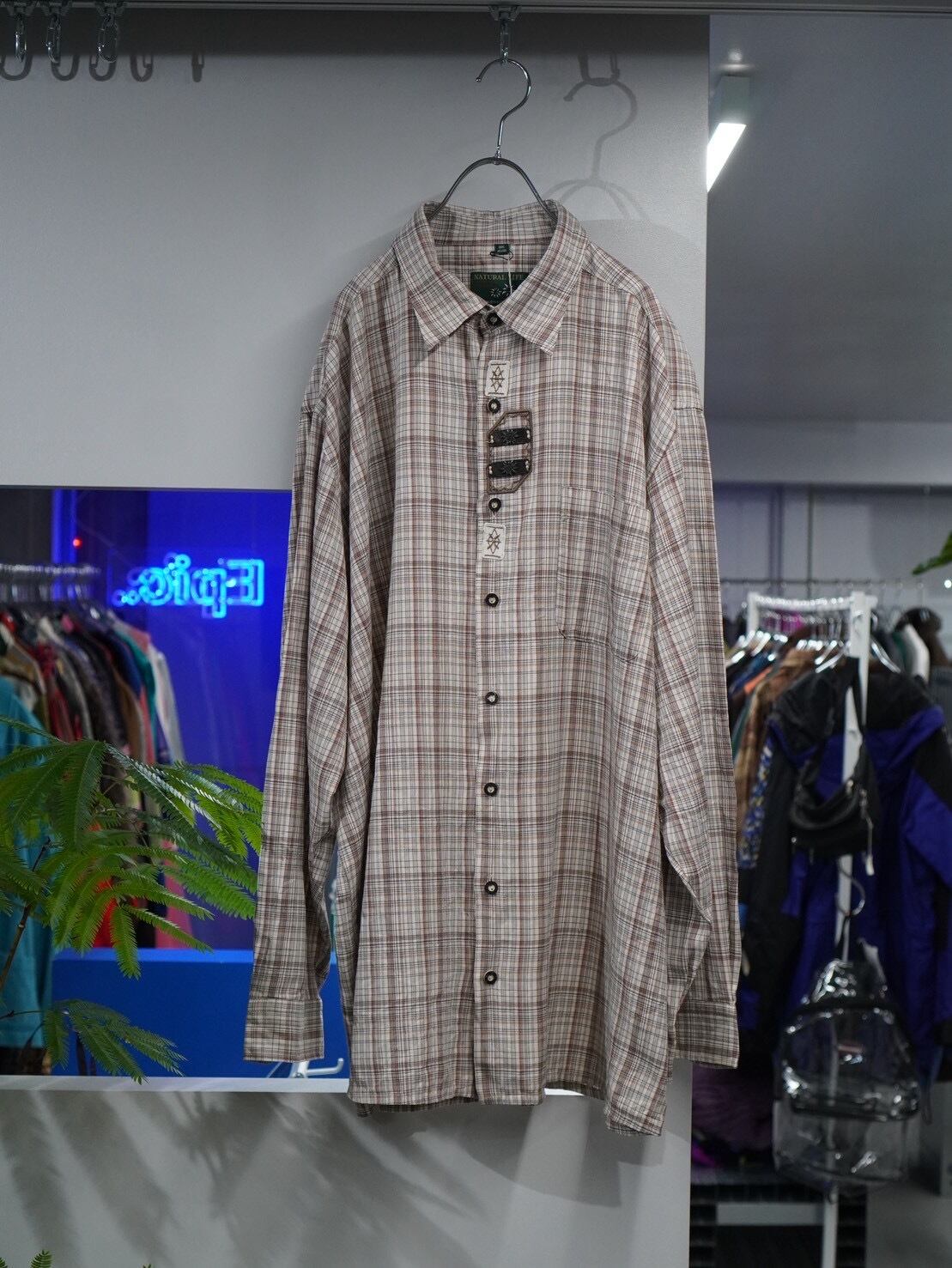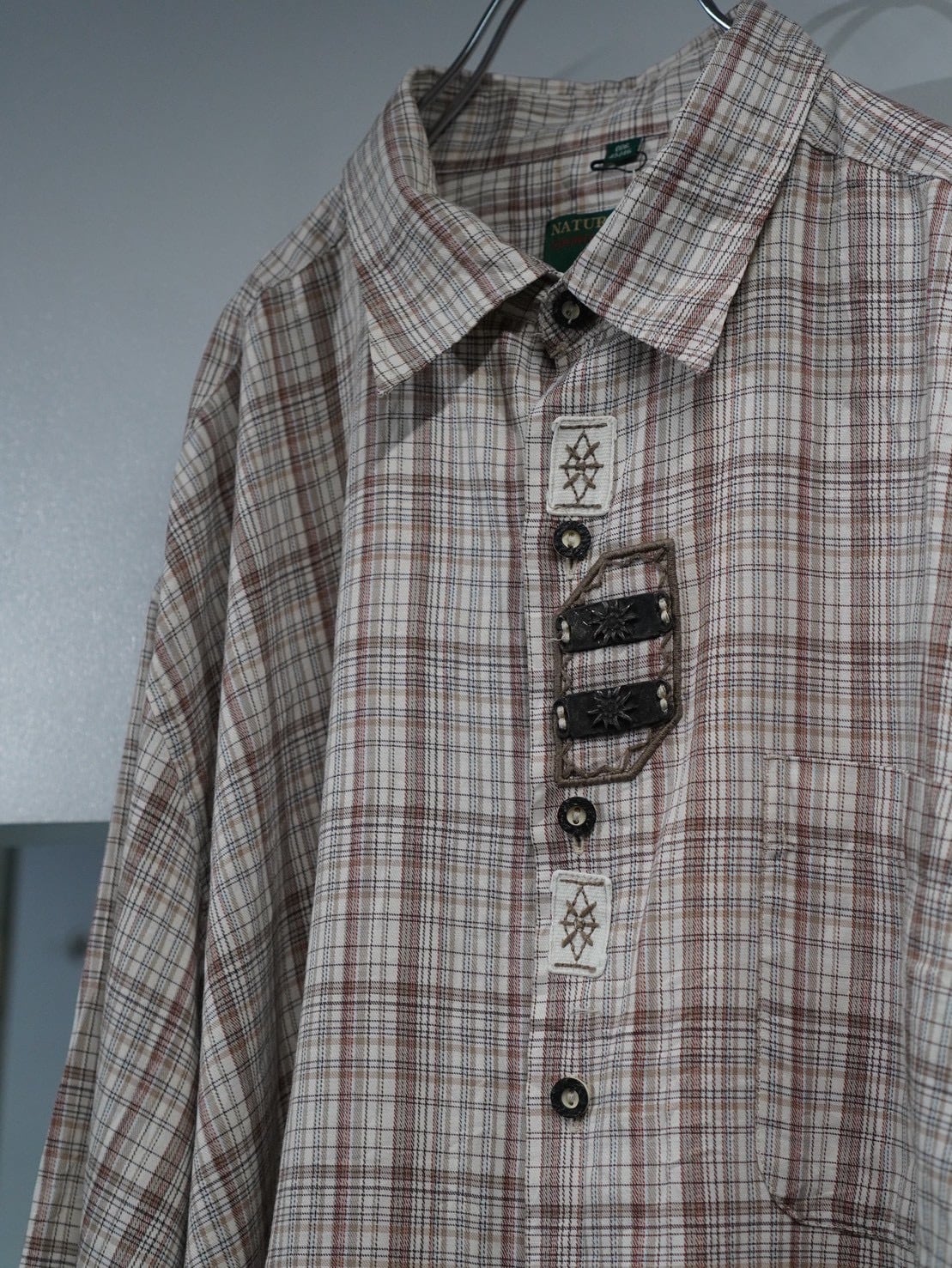ブラウンチェックに民族調の装飾を効かせた一枚。