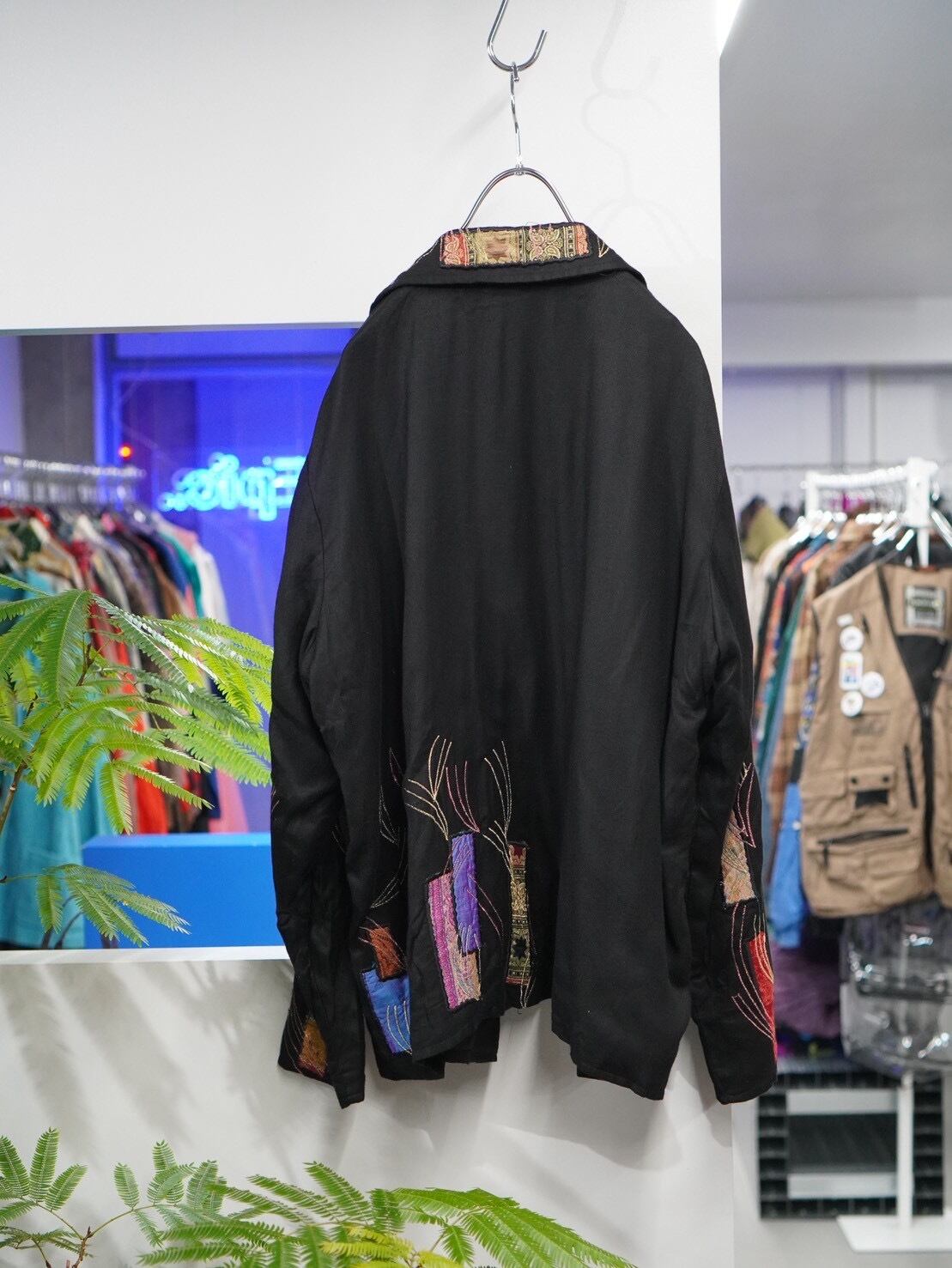 インド製のレーヨン×パッチワークロングジャケット。
