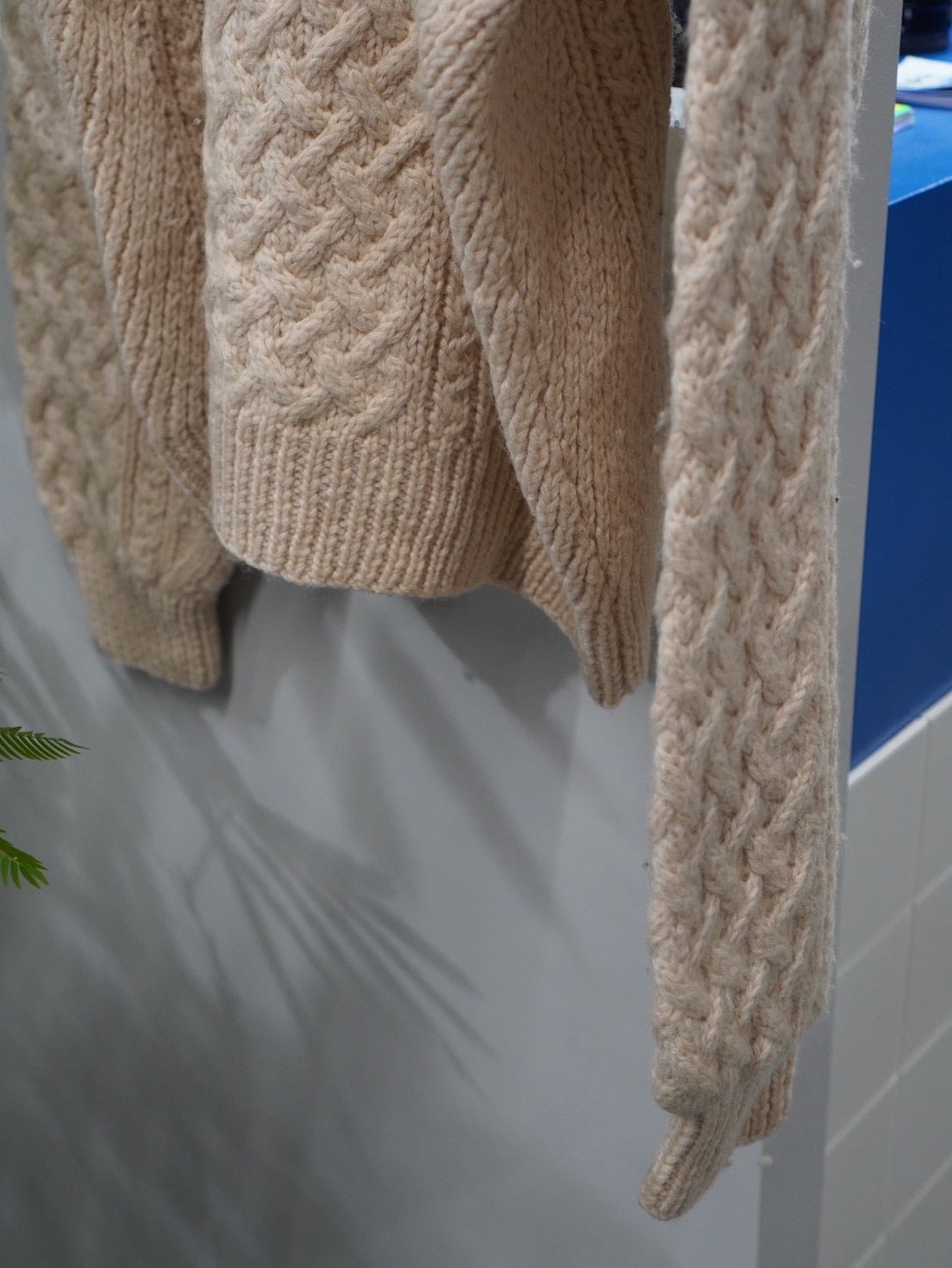 肉厚で立体的なケーブル編み、香港製のオールド特有の重厚な質感。