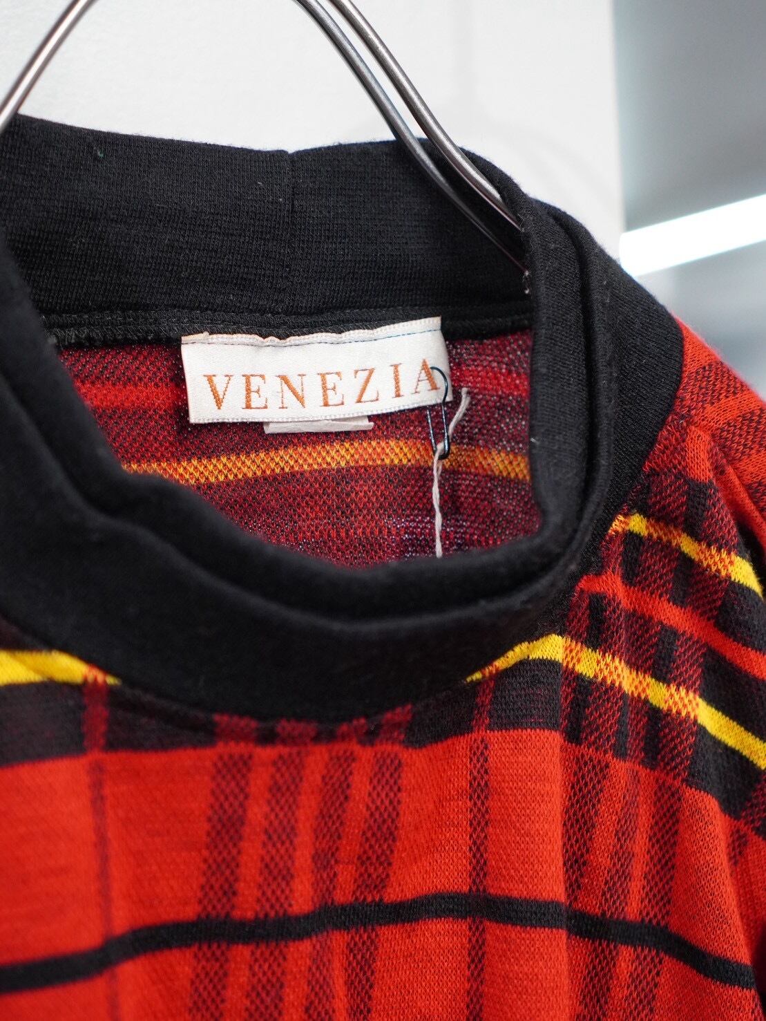 大胆チェックのロングトップス。