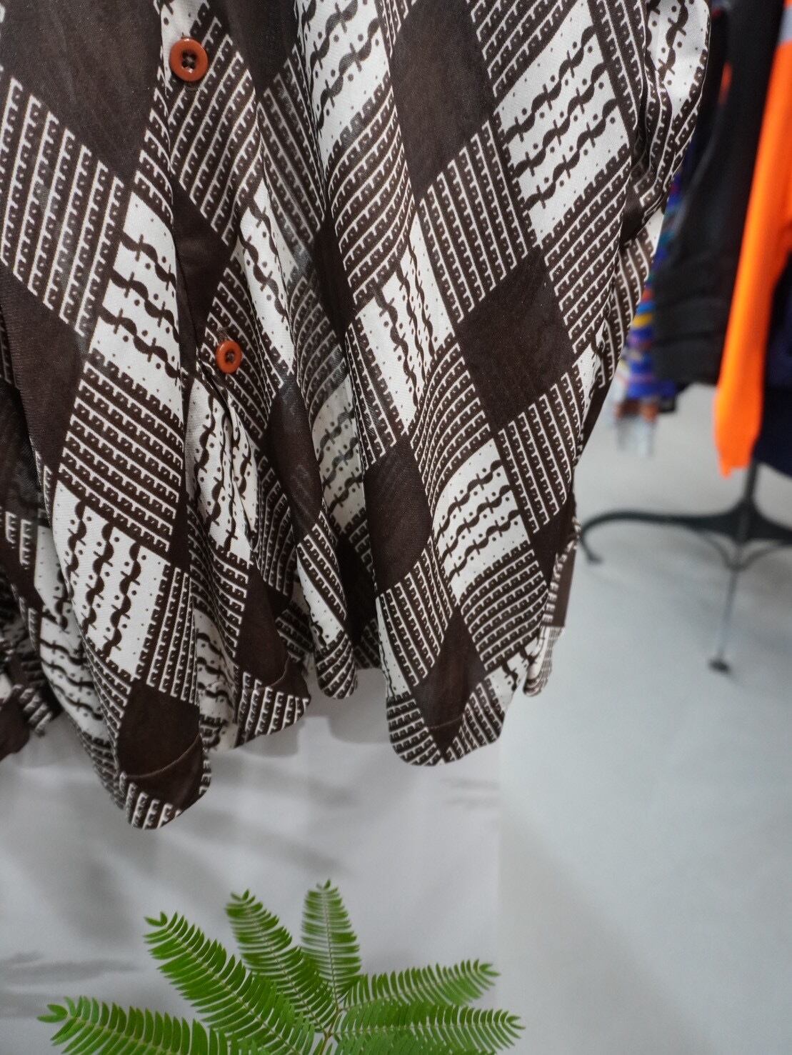 リズムのある総柄ながら、落ち着いたトーンでまとめられており、派手すぎないバランス感が魅力です。