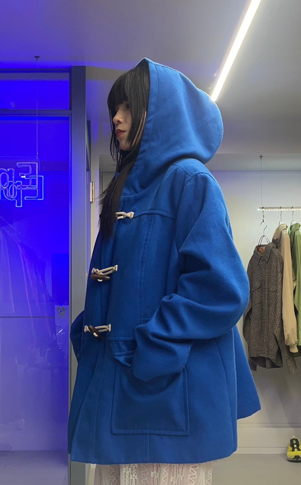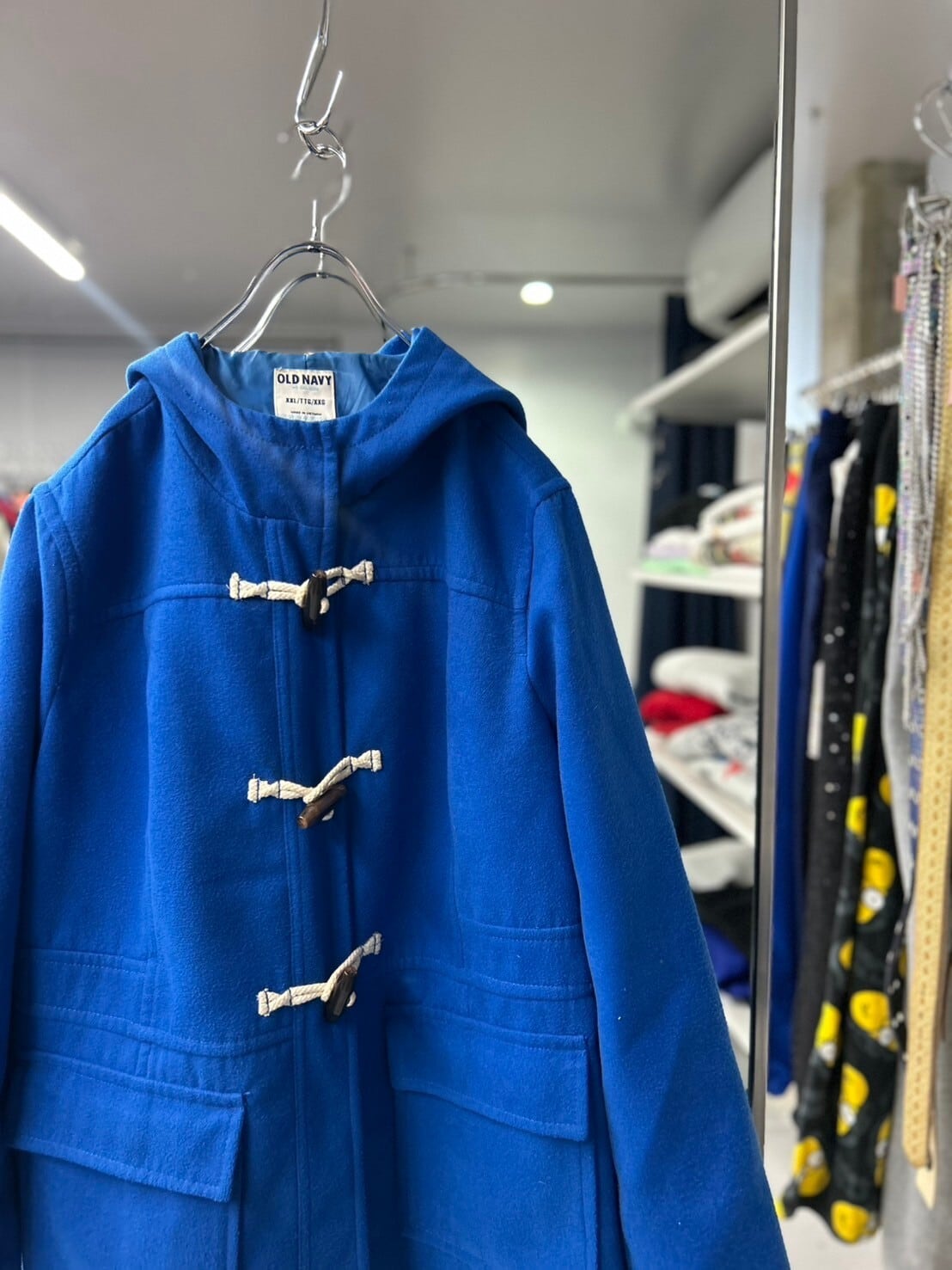 色合い鮮やかなロイヤルブルーのダッフルコート
